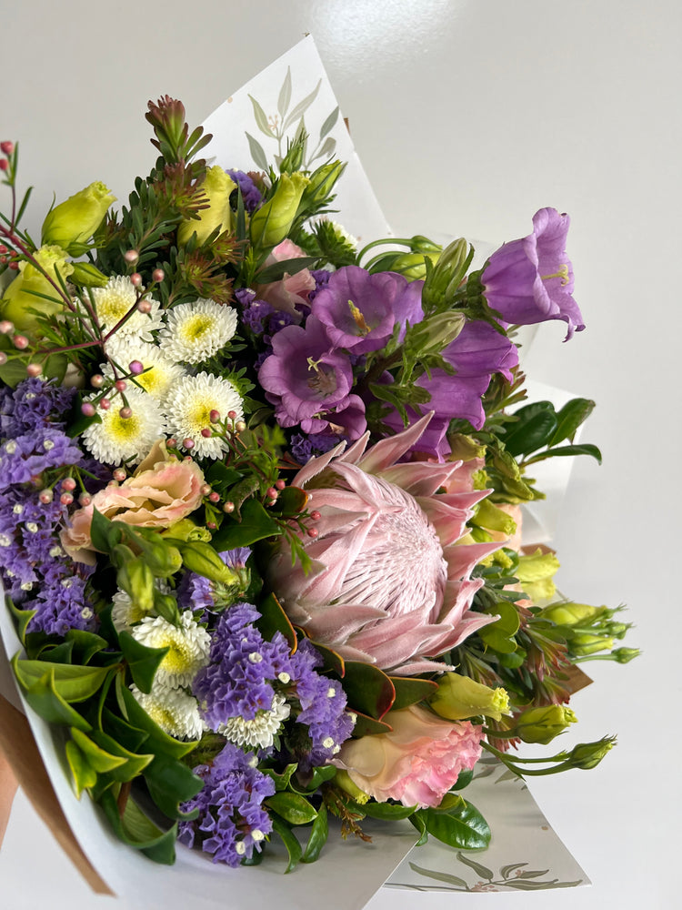 DISCLAIMER: Seasonal flowers means you are blessed with a wide range of ever-changing styles, varieties and colours. Products pictured are for size example only. Follow along on Facebook or Instagram for what’s currently in the fields.